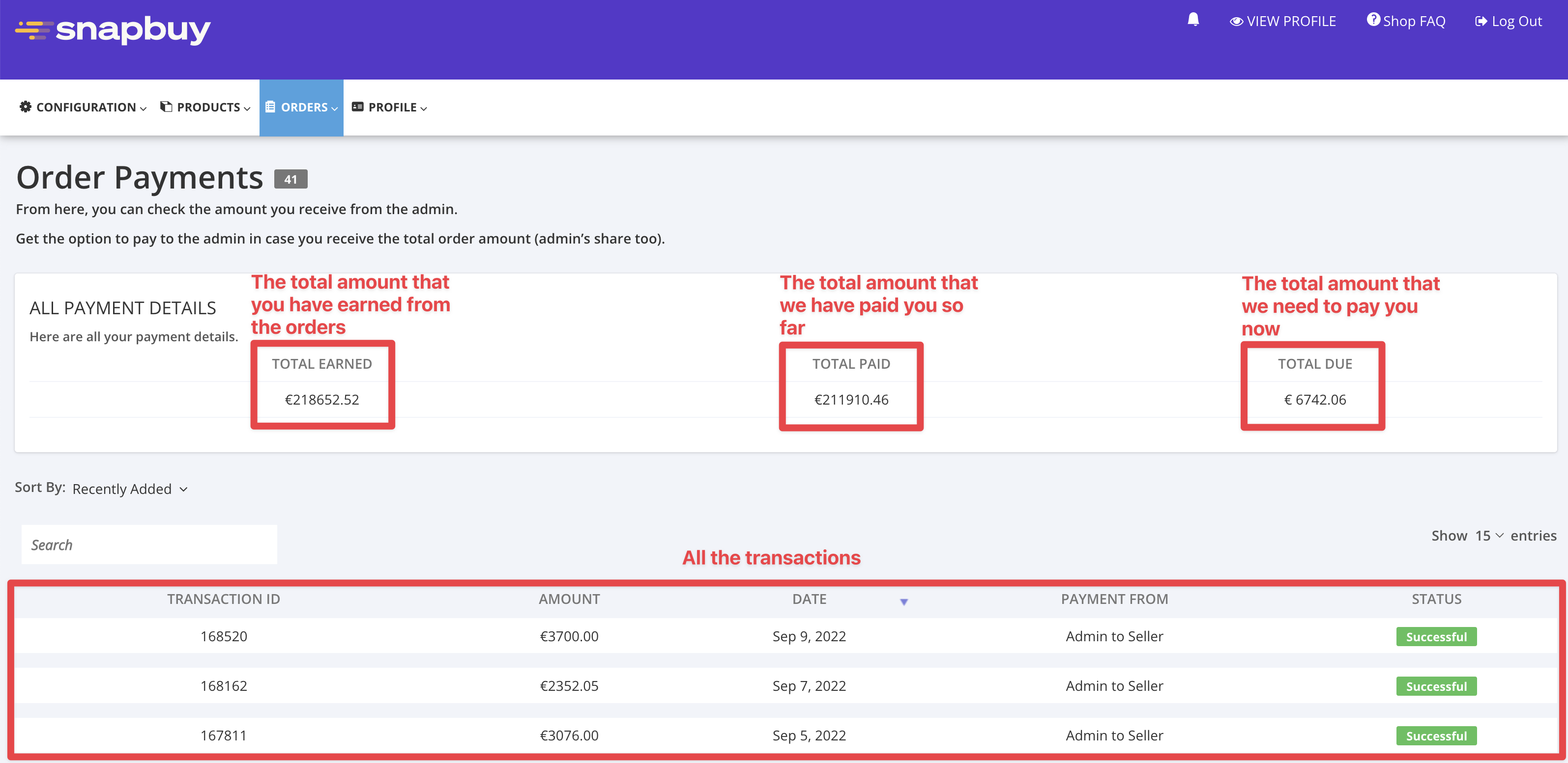 Where can I see my payments?Updated 2 years agoHere you can find the payments arranged from Snapbuy to you:Here are the payout details explained: Was this article helpful? YesNo